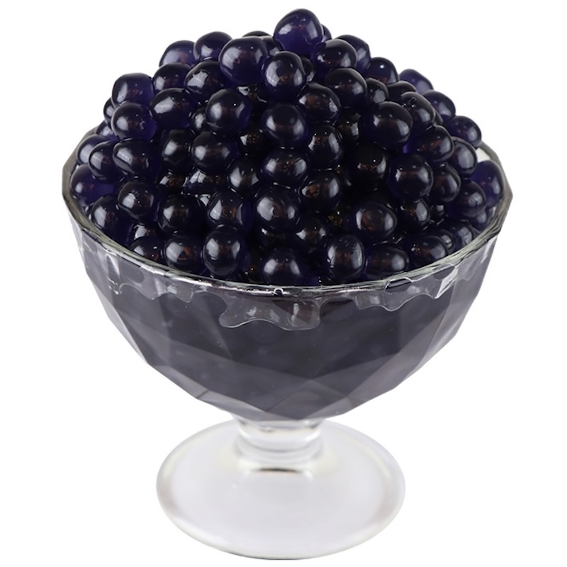 ブルーベリーフレーバーポッピングボバは、鮮やかなパープルブルーとブルーベリーの甘酸っぱさが特長の球状スイーツです。