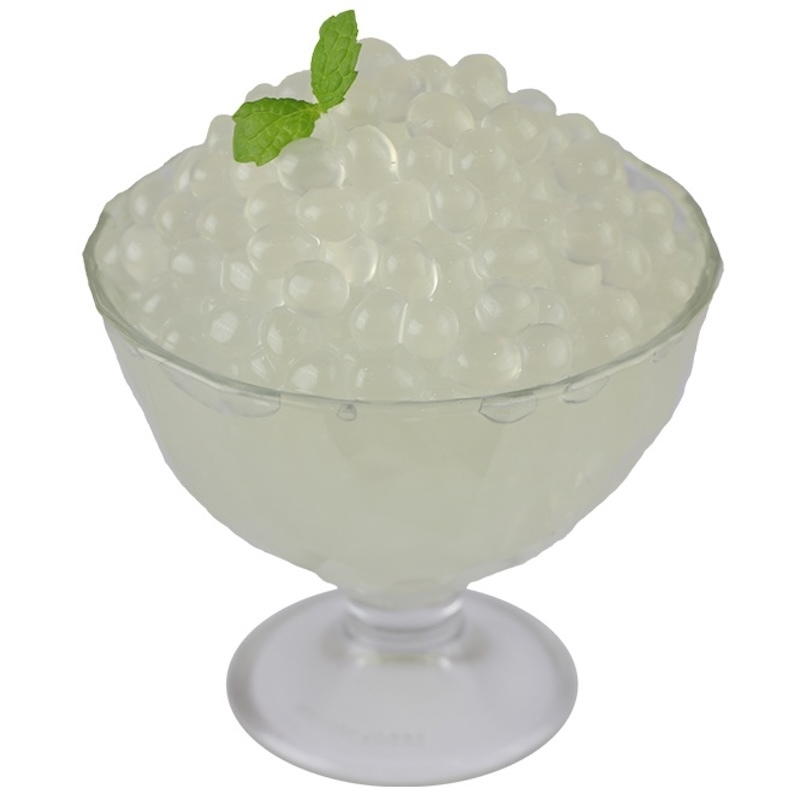 ライチフレーバーポッピングボバは、すっきりとした透明感とライチの芳醇な甘さが特長の球状スイーツです。